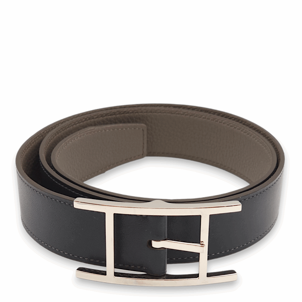 Quetin Reversible 32mm by 85cm Blue De Prusse/Etain Belt in Togo, Palladium hardware