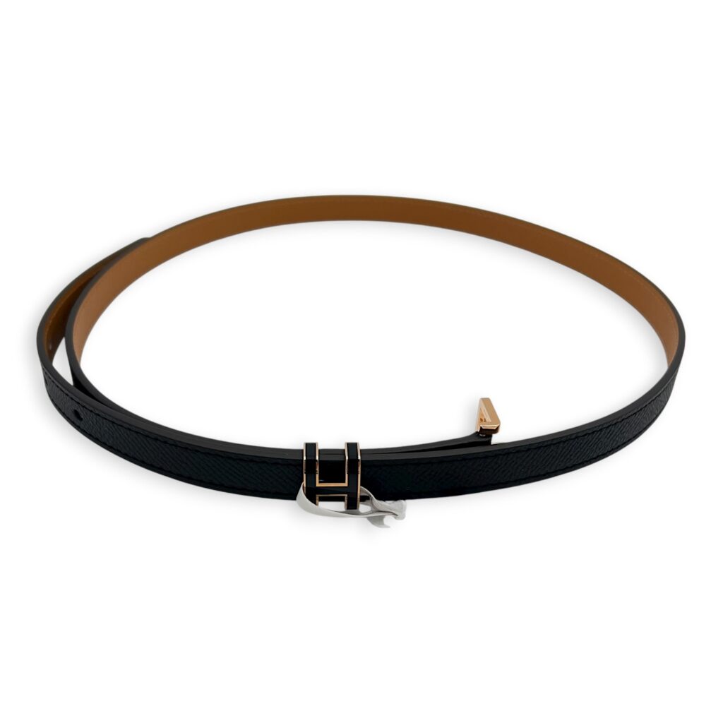 Pop H 85cm Black Belt in Epsom, Rose Gold hardware