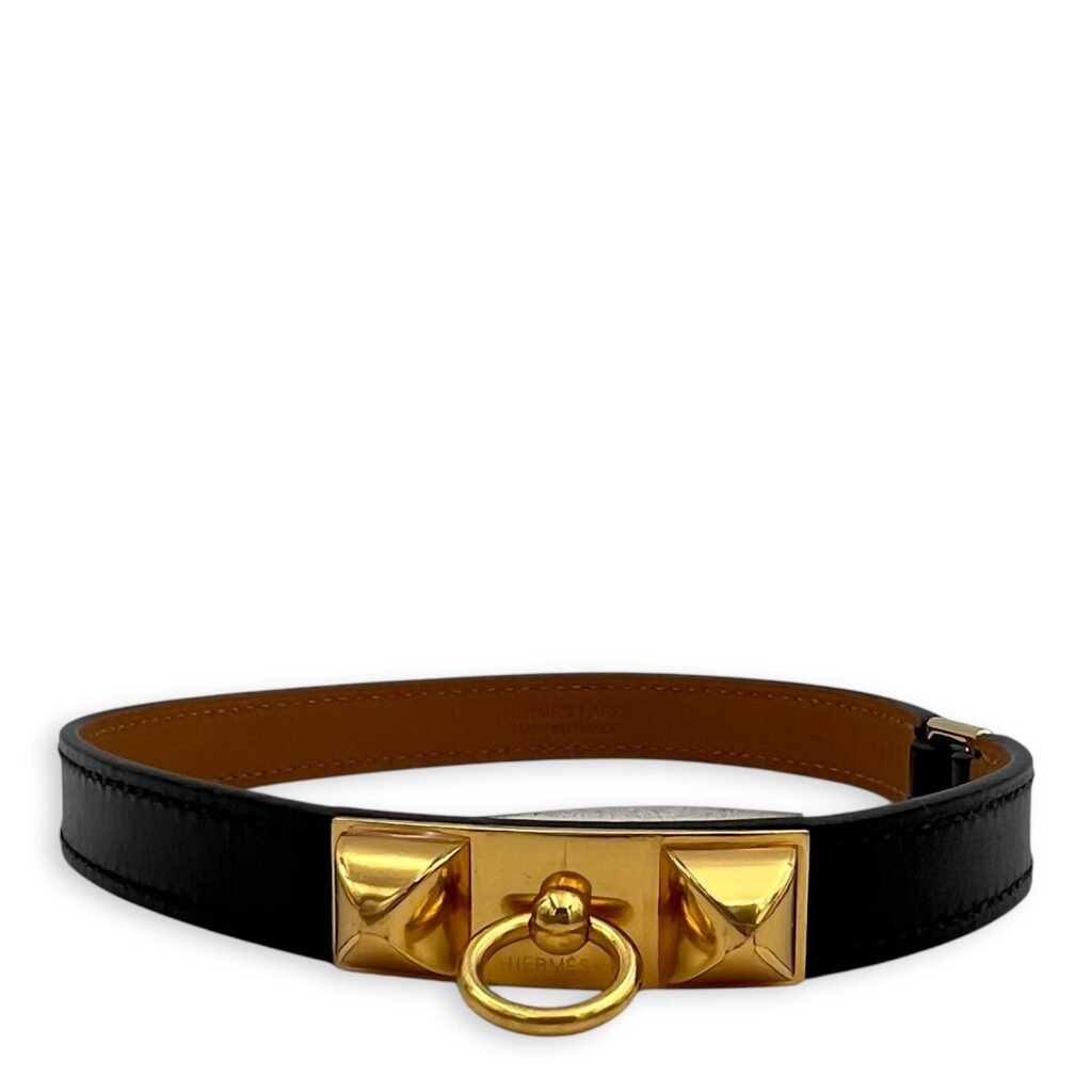Pop H Double Tour T2 Black Bracelet in Chevre Chamkila, Gold hardware