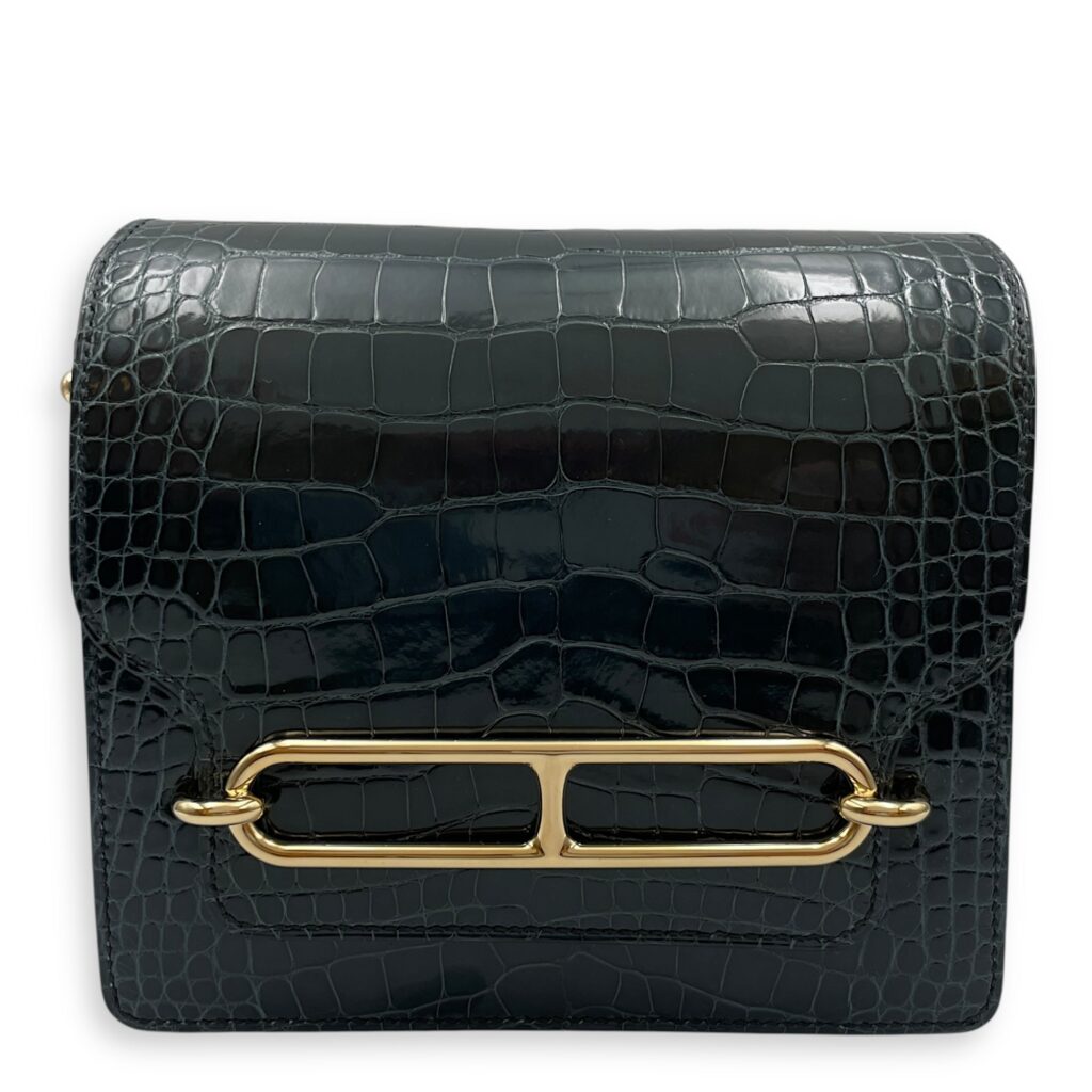 Roulis Mini Vert Rousseau in Shiny Alligator, Permabrass hardware