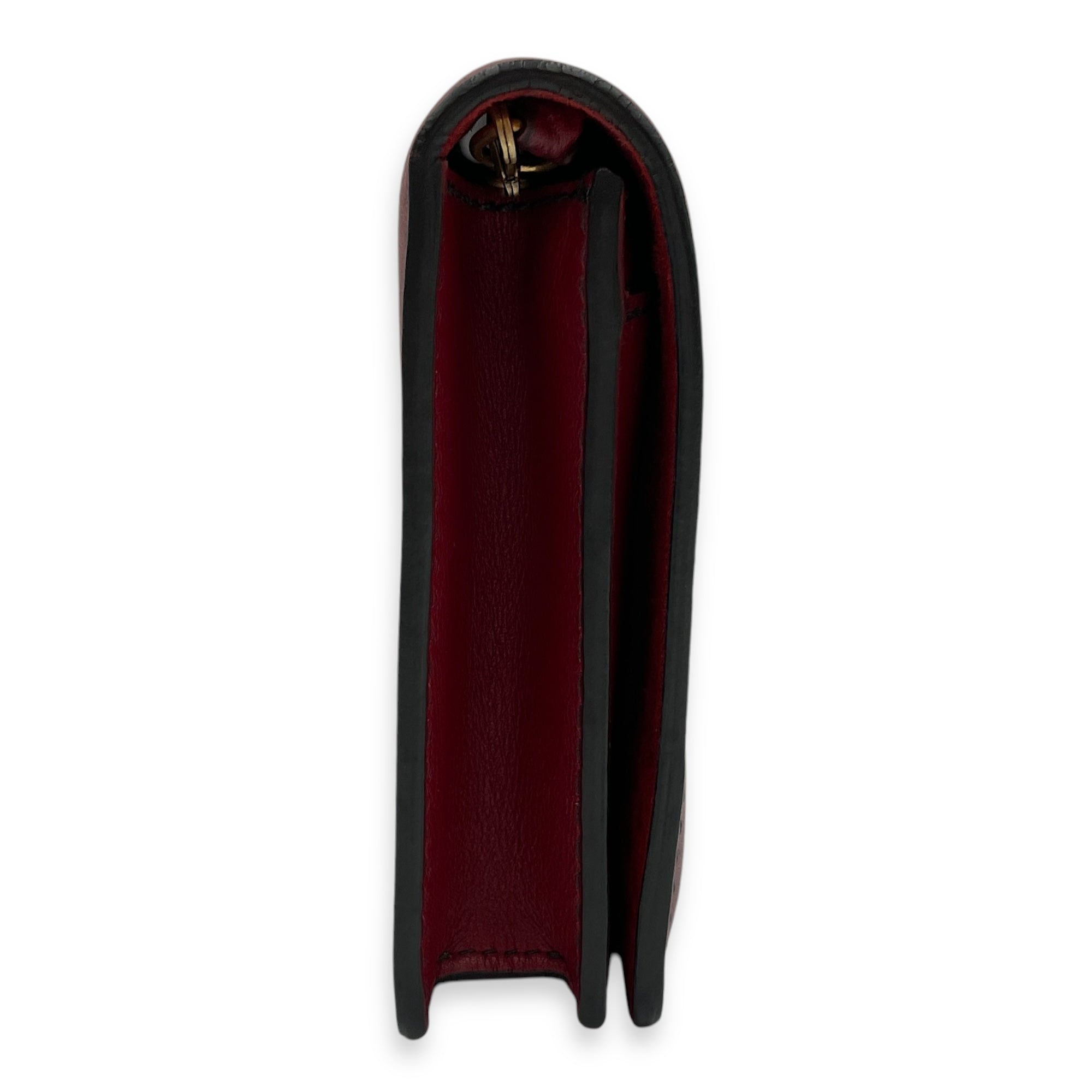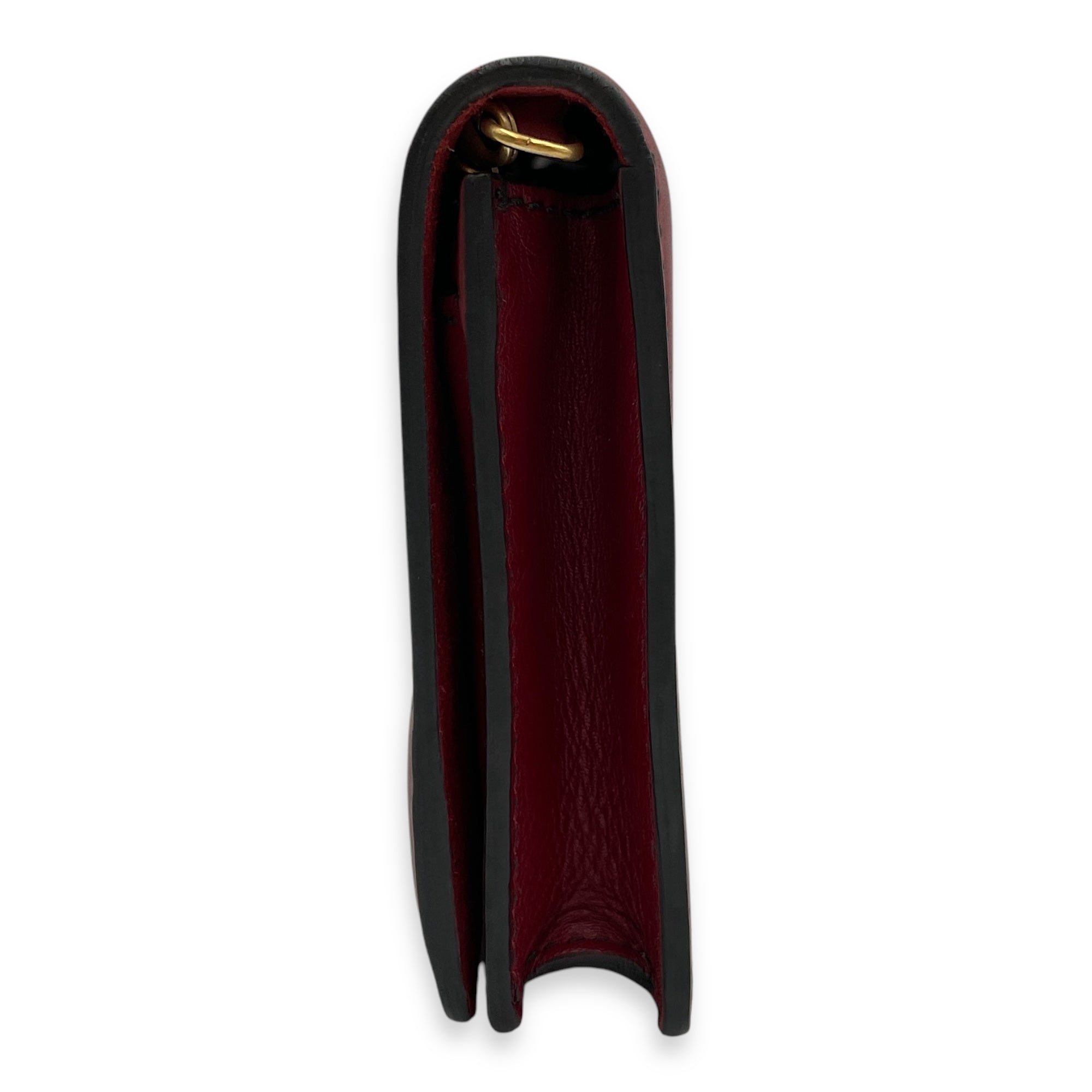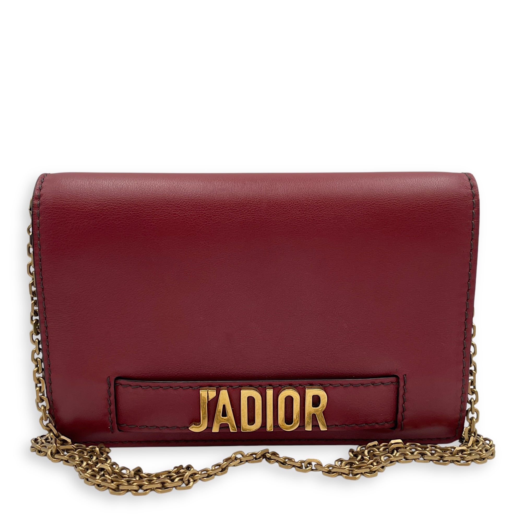 J’Adoir Red Wallet On Chain in Calfskin, Brushed Gold hardware