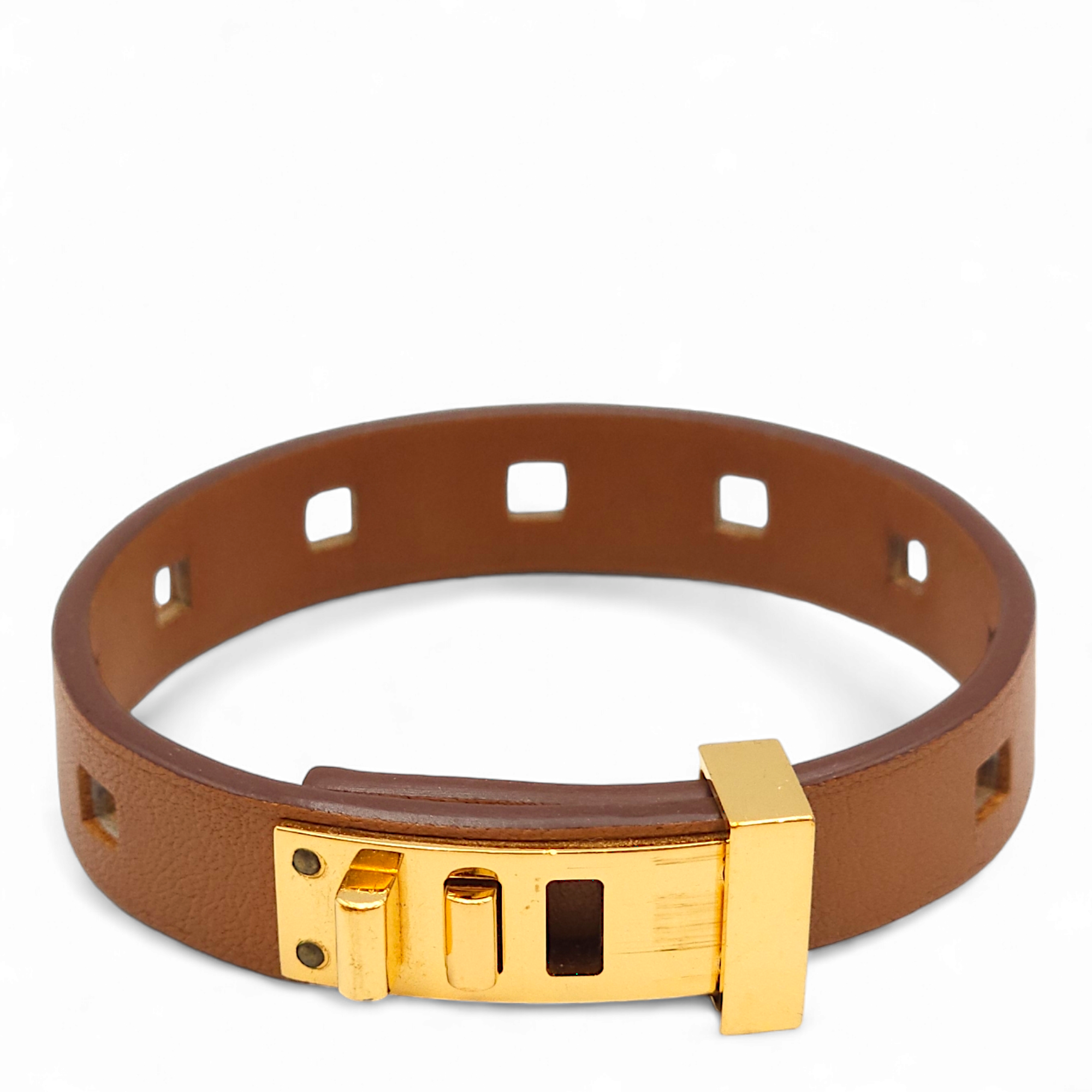 Be the first to review “Mini Dog T3 Brown Bracelet in Swift, Gold hardware”
